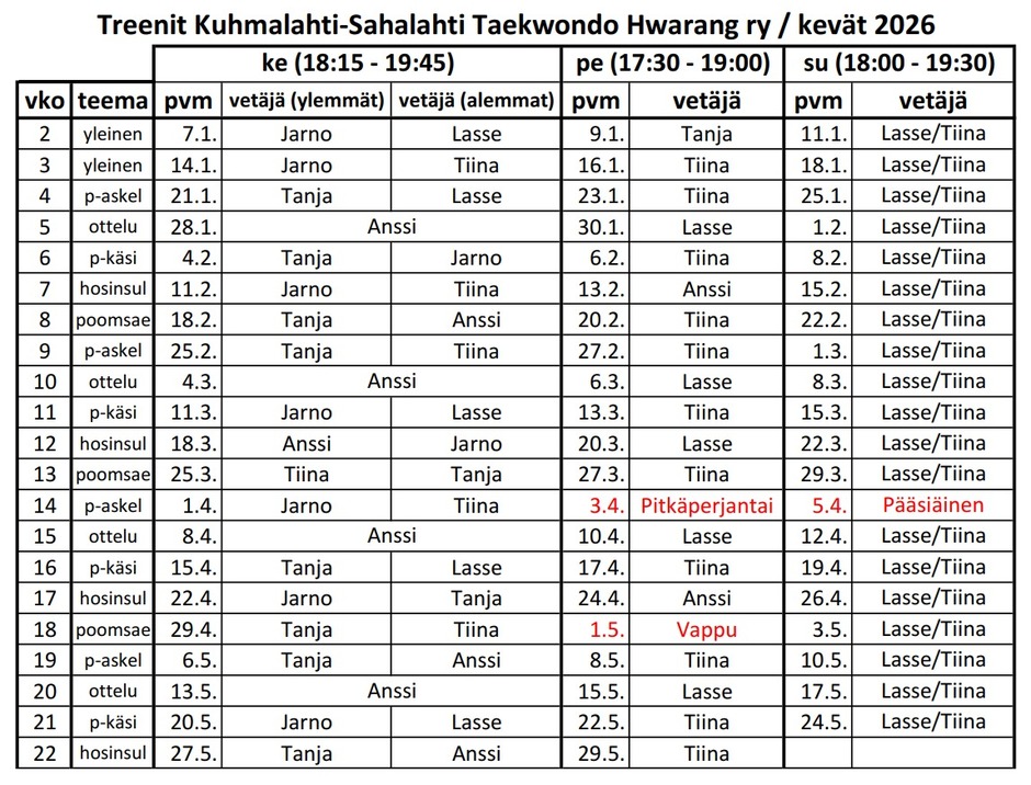 Sunnuntai 18.00 - 19.30 ( Kunto taekwondo )
